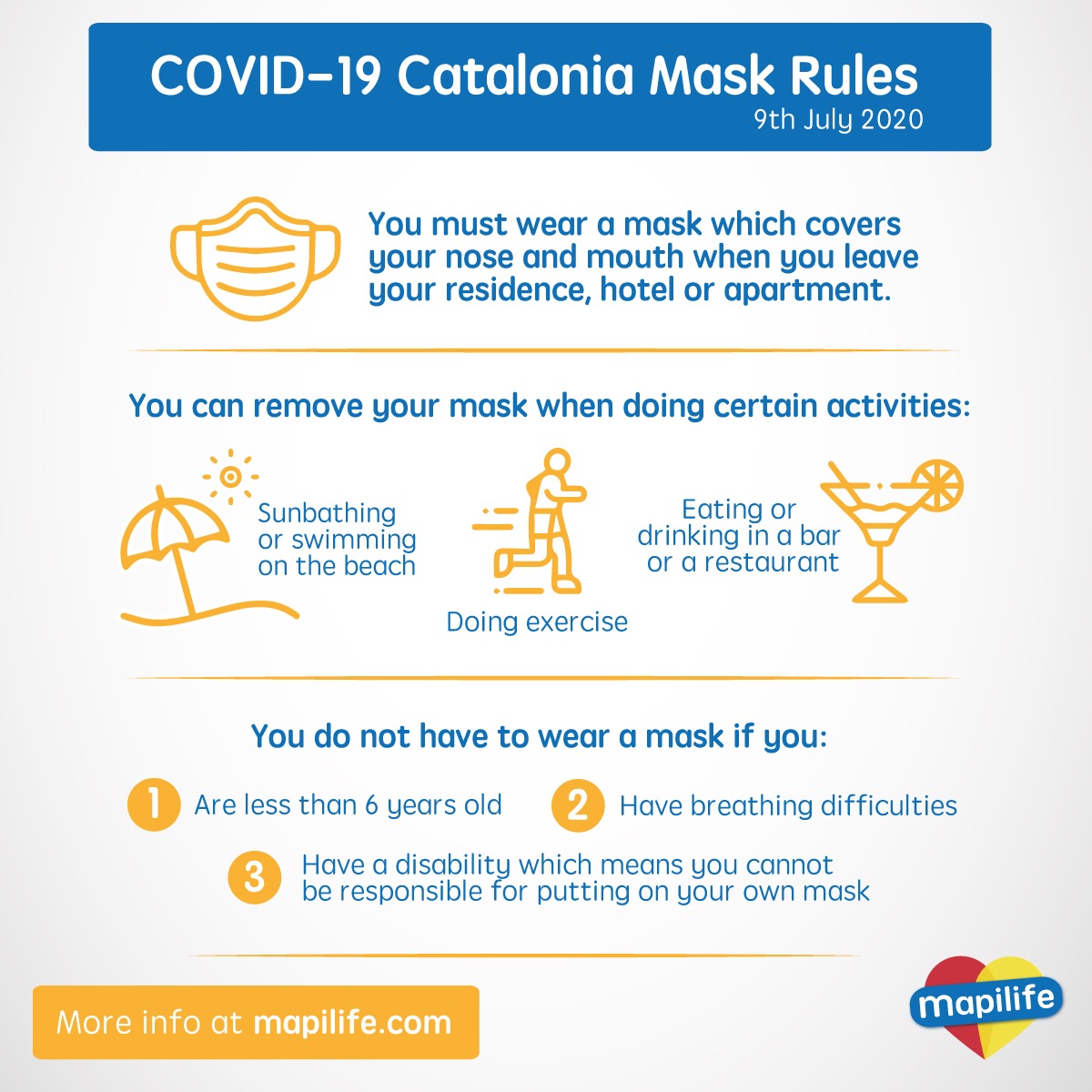 • If you have a disability which means you cannot be responsible for putting on your own mask.